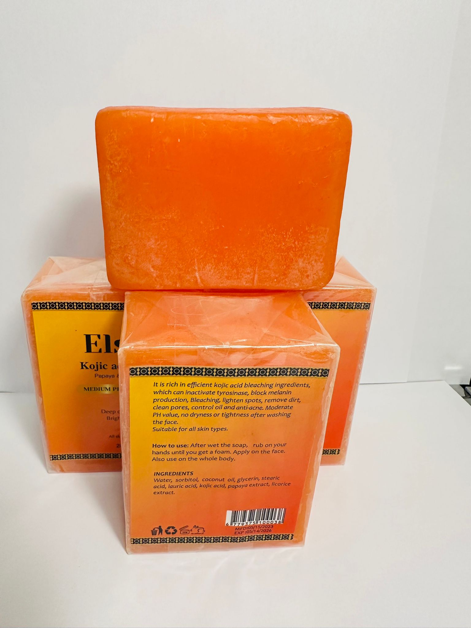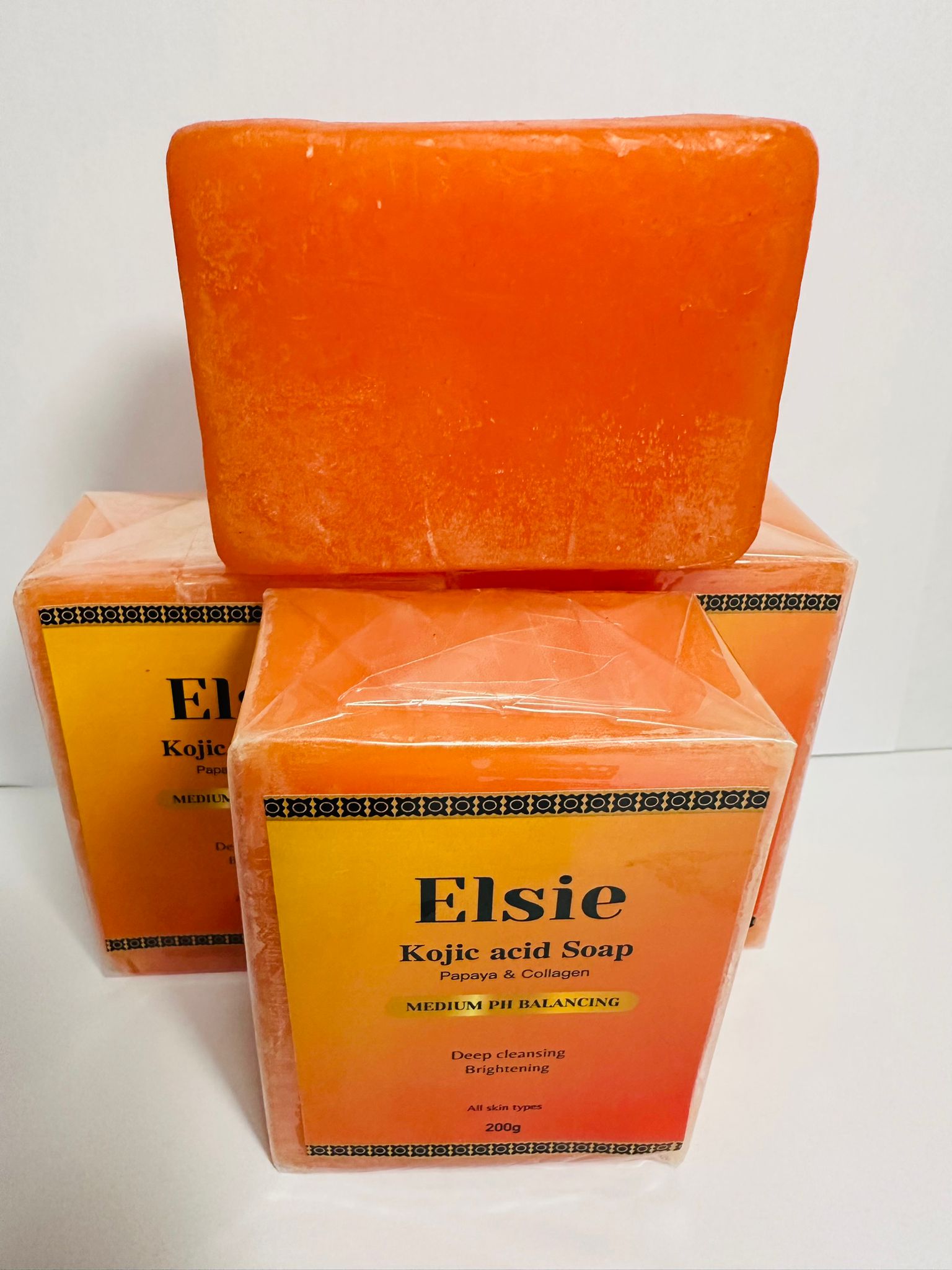 Eliszene’s Beauty Kojic, Papaya & Collagen Brightening Soap – Deep Cleansing, For All Skin Types (3 x 200g)